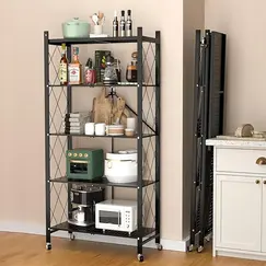 رف تخزين معدني قابل للطي 5 أدوار مع عجلات (سعة كبيرة)