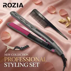 مكواة تمليس الشعر RoziaPro الاحترافية موديل HR-817 - حرارة 950 فهرنهايت مع طقم تصفيف