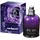 زجاجة بنفسجية أنيقة مع غطاء معدني، تعكس الطابع الغامض والجذاب للعطر، مع عبوة مزينة بوردة دوامية تضيف لمسة فنية ساحرة