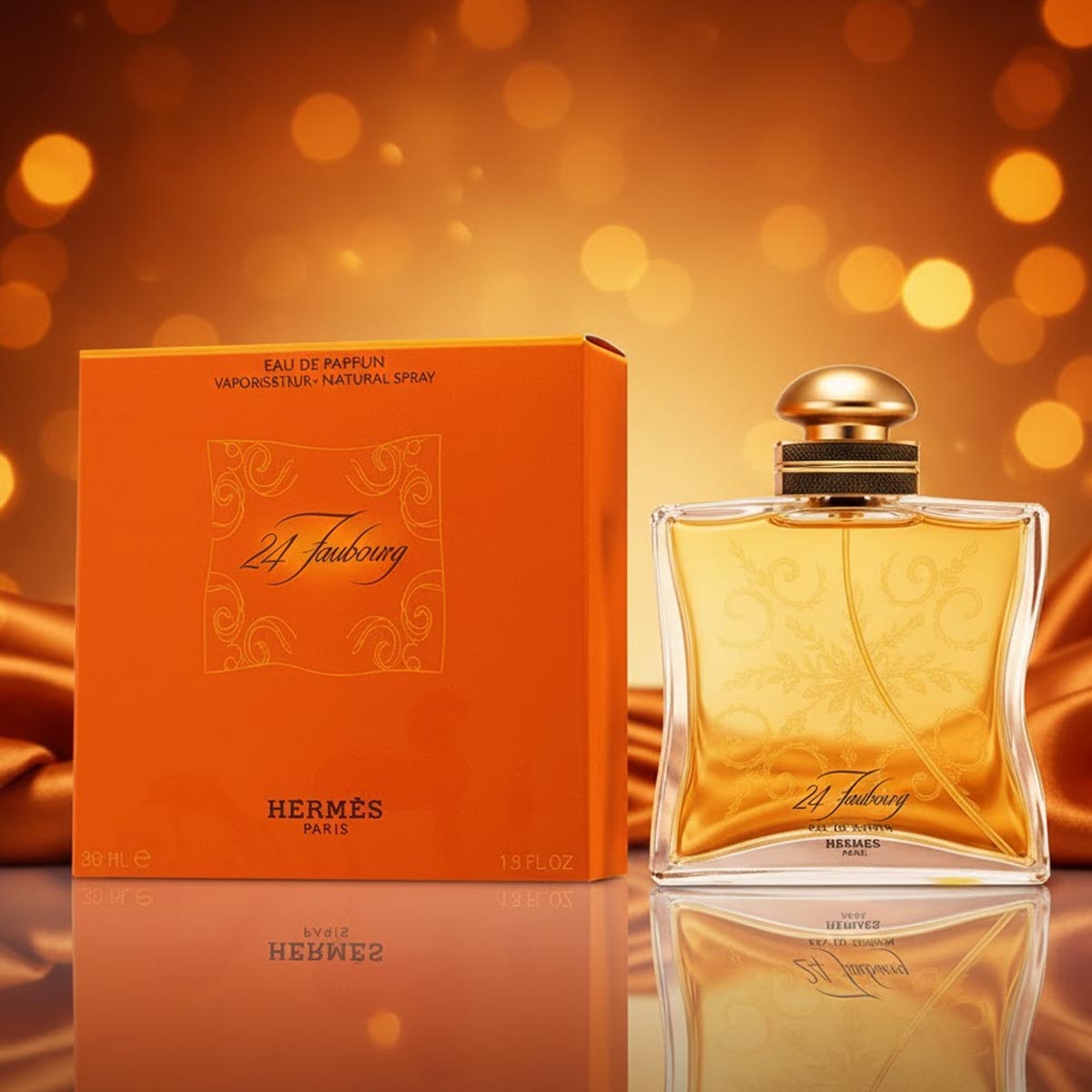24 Faubourg هو عطر أنثوي فاخر من دار Hermès، مستوحى من عنوان بوتيك Hermès الشهير في باريس. يجسد العطر لحظة مشمسة حالمة، حيث تلتقي الأنوثة الكلاسيكية بالدفء الشرقي في تركيبة زهرية غنية ومضيئة.