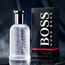 زجاجة بلون رمادي ضبابي مع غطاء أسود أنيق، مزينة بشعار BOSS البارز وكلمة SPORT باللون الأحمر، وتغليف بنقشة ألياف الكربون يعكس روح العطر الديناميكية.