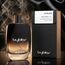 زجاجة أنيقة بتدرج أسود شفاف مع لمسات فضية، وتغليف أسود بسيط يعكس هوية العطر العصرية والراقية.