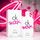 زجاجة بيضاء أنيقة تحمل شعار SHOCK الوردي الجريء، مع تغليف يعكس الطابع العصري والمتمرد للعطر.
