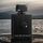 زجاجة سوداء أنيقة بلمسة لامعة وسلسلة معدنية فريدة، مع تغليف فاخر يعكس شخصية العطر الجريئة.