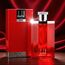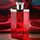 زجاجة أنيقة بلون أحمر شفاف تعكس طابع العطر الجريء، مع غطاء فضي معدني بلمسة ذكورية عصرية.