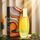 زجاجة أنيقة بتدرج لوني من الأخضر إلى الكهرماني، مع غطاء أصفر يحمل حرف "B" المنقوش، وتغليف فني نابض بالألوان يعكس روح العطر الاستوائية والفنية.