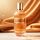 زجاجة مضلعة بلون كهرماني أنيق مع غطاء ذهبي فاخر، وتغليف بلون المشمش مزين بإطار كلاسيكي يحمل صورة أنثوية فنية تعكس الطابع النبيل للعطر.