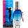 زجاجة أنيقة بتدرج أزرق شفاف، مزينة بسحر على شكل نخلة مربوط بخيط وردي، مع تغليف فني يعكس أجواء الجزر الاستوائية والمرح.