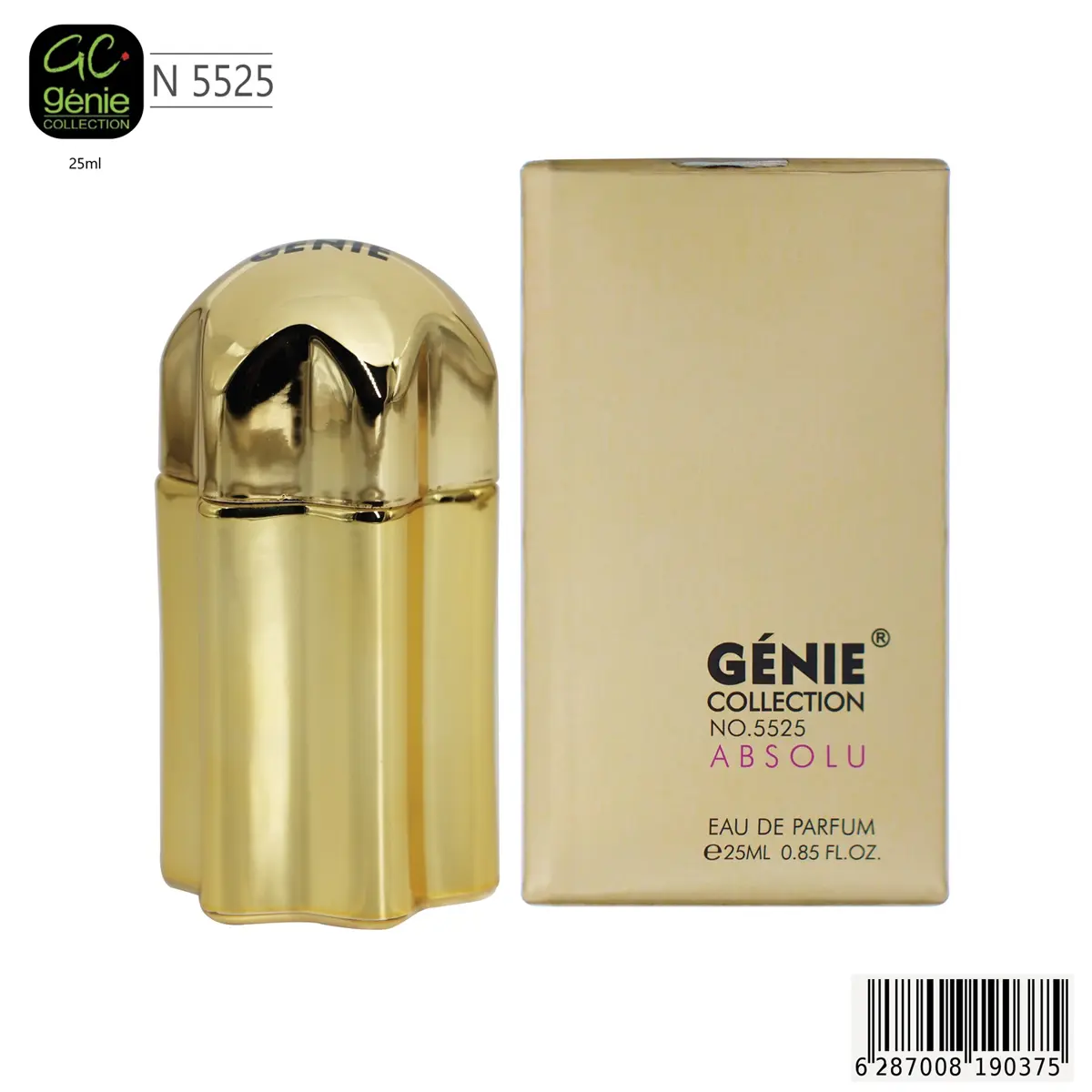 عش أجواء الرفاهية المطلقة مع عطر جيني كولكشن أبسولو (Absolu) رقم 5525. يجسد هذا العطر جوهر الفخامة والنجاح، حيث يأتي في زجاجة ذهبية بالكامل لامعة وجذابة، تعكس الدفء والقوة. صُمم هذا العطر للرجل الجريء الذي يبحث عن رائحة عميقة وكثيفة (Absolu) تترك أثراً لا يُنسى.