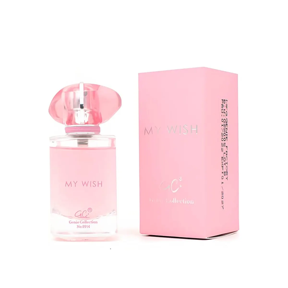 حلقي في عالم من الأحلام والأمنيات المحققة مع عطر جيني كولكشن ماي ويش (My Wish) رقم 8914. يجسد هذا العطر روح الأنثى المتفائلة والمحبة للحياة، ويأتي في زجاجة بلون "وردي ناعم" (Baby Pink) تعكس الرقة والرومانسية، يعلوها غطاء كريستالي شفاف مصقول على شكل جوهرة، ليضفي لمسة من البريق على يومك.