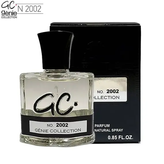 استمتع بالفخامة والتميز مع عطر رقم 2002 من مجموعة جيني كوليكشن (Génie Collection) الشهيرة. صُمم هذا العطر ليقدم تجربة عطرية راقية في حجم مثالي، ويأتي في زجاجة شفافة أنيقة تكشف عن نقاء العطر، مع غطاء أسود كلاسيكي وعلبة سوداء فخمة.