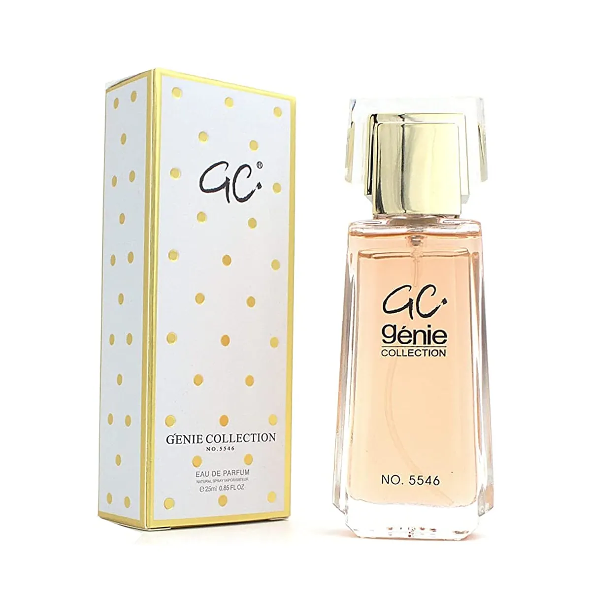 استمتعي بإشراقة لا مثيل لها مع عطر جيني كولكشن رقم 5546. يمثل هذا العطر أيقونة للأنوثة الحديثة والقوية، حيث يأتي في زجاجة زجاجية رفيعة وممشوقة (Slim Silhouette) تكشف عن سائل عطر ذهبي مشرق، يعلوها غطاء كريستالي شفاف بقلب ذهبي هندسي، ليعكس الضوء ويضفي لمسة من الفخامة المستقبلية.