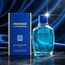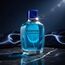 زجاجة زرقاء أنيقة بسائل عطري بلون البحر، مع تغليف أزرق مزين بإطارات صفراء يعكس الطابع البحري العصري للعطر.