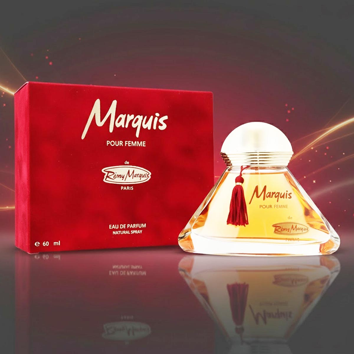 Marquis Pour Femme هو عطر أنثوي فاخر ينبض بالجاذبية والرقي، يجمع بين الزهور والفواكه والمكونات الشرقية في توليفة ساحرة تعكس الأنوثة القوية والأناقة الفرنسية.