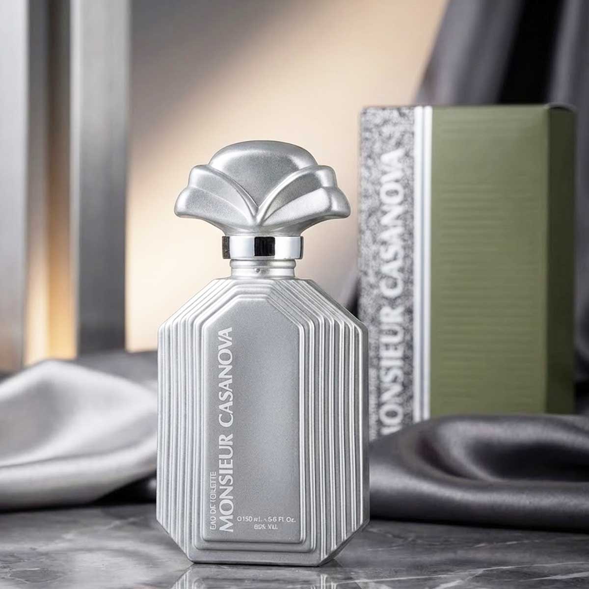 Monsieur Casanova هو عطر رجولي كلاسيكي ينبض بالفخامة والتميز، يجمع بين النفحات العطرية والخشبية والمكونات الشرقية في توليفة تعكس شخصية الرجل الأنيق والجريء.