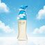 زجاجة بتدرج أزرق إلى شفاف مع غطاء مبتكر يشبه قبعة مرحة، وتغليف أزرق مزين برسومات سحابية يعكس روح العطر الحالمة والمنعشة.