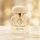 زجاجة شفافة أنيقة بغطاء بيضاوي مزخرف، مع تغليف أبيض ذهبي يعكس روح العطر الأنثوية الراقية.
