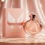 زجاجة دائرية أنيقة بلون وردي ذهبي، مزينة بتفاصيل معدنية راقية، وتغليف وردي مزين بجناحين أبيضين يعكس روح العطر الأسطورية.
