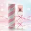 زجاجة وردية أنيقة بتصميم حلزوني، وتغليف مزخرف بخطوط وردية وبيضاء – يعكس المرح والأنوثة بأسلوب عصري جذاب.