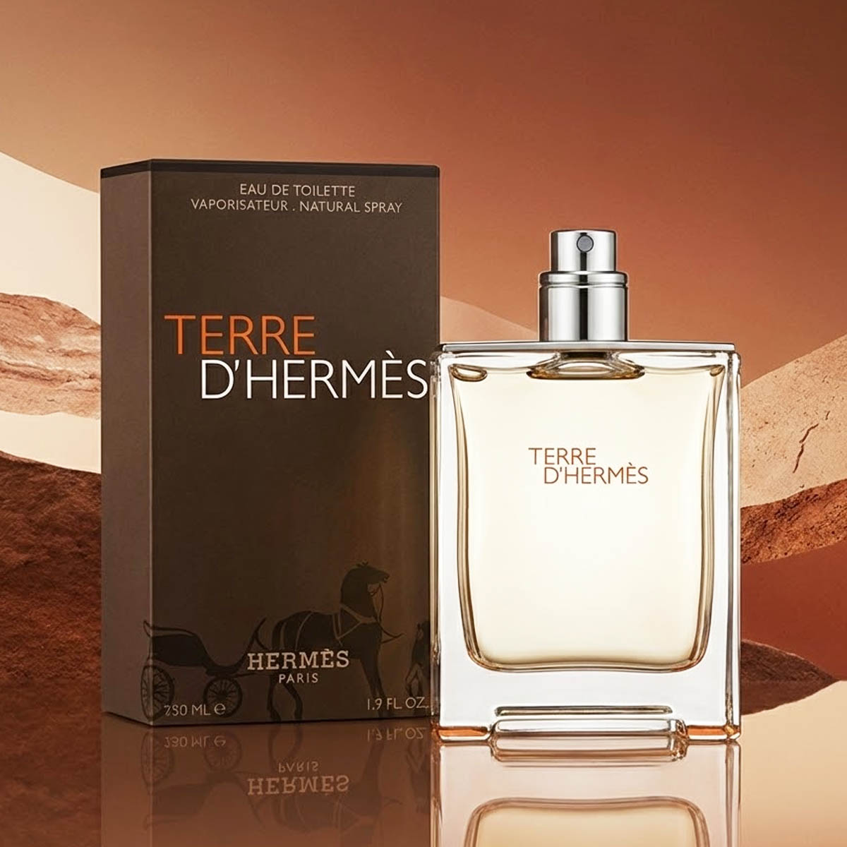 Terre d’Hermès هو عطر رجالي فاخر يجسد العلاقة بين الأرض والسماء، حيث تلتقي الطبيعة بالفكر في تركيبة خشبية حمضية تنبض بالأناقة والعمق. عطر فلسفي الطابع، يعكس الرجولة الناضجة والثقة الهادئة.