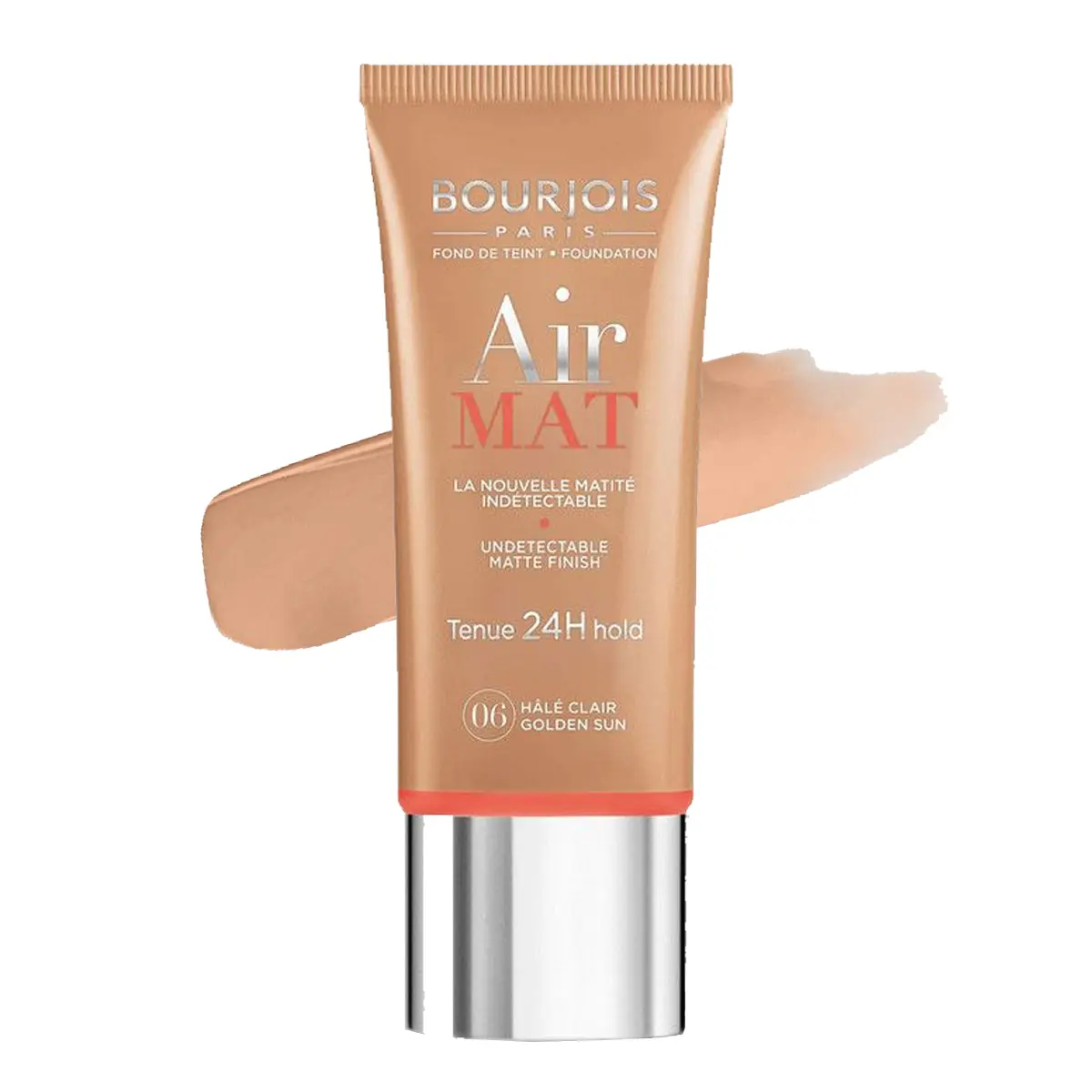 استمتعي ببشرة خالية من اللمعان ولكنها تتنفس بحرية مع كريم أساس Bourjois Air Mat Foundation بدرجة 06 Golden Sun (شمس ذهبية). صُمم هذا الفاوندشن ليحقق المعادلة الصعبة: "مات" (Matte) وثابت لمدة 24 ساعة، وفي نفس الوقت "غير قابل للكشف" (Undetectable)، أي أنه خفيف كالريشة ولا يترك طبقة سميكة كالقناع.