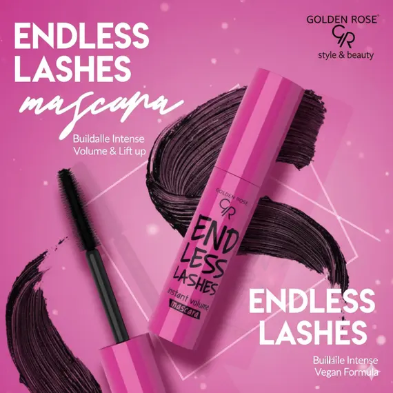 ماسكارا إندلس لاشز من جولدن روز تمنحك كثافة فورية لرموشك بفضل تركيبتها الغنية وفرشاتها المصممة لتوزيع المنتج بدقة.