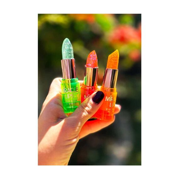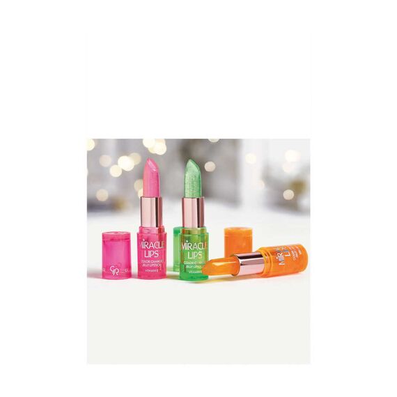 اكتشفي سحر اللون الذي يتكيف مع درجة حرارة شفتيك مع أحمر الشفاه الجيلي متغير اللون Miracle Lips من جولدن روز. يتميز هذا الروج بتركيبة شفافة بلون برتقالي/ذهبي تتحول إلى لون وردي طبيعي وهادئ بمجرد تطبيقه، ليمنحك مظهراً مخصصاً لا يتكرر.