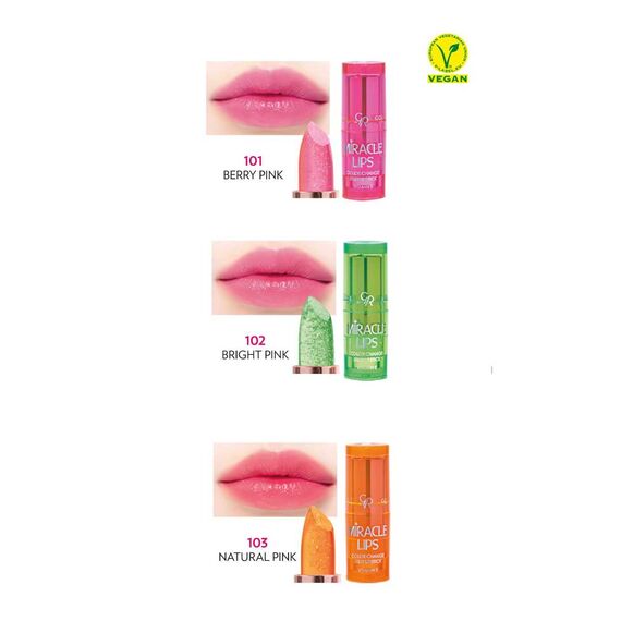 أحمر شفاه جيلي متغير اللون بفيتامين E - جولدن روز - Miracle Lips Color Change Jelly Lipstick - 3.7 جرام - درجة 103 (وردي طبيعي)