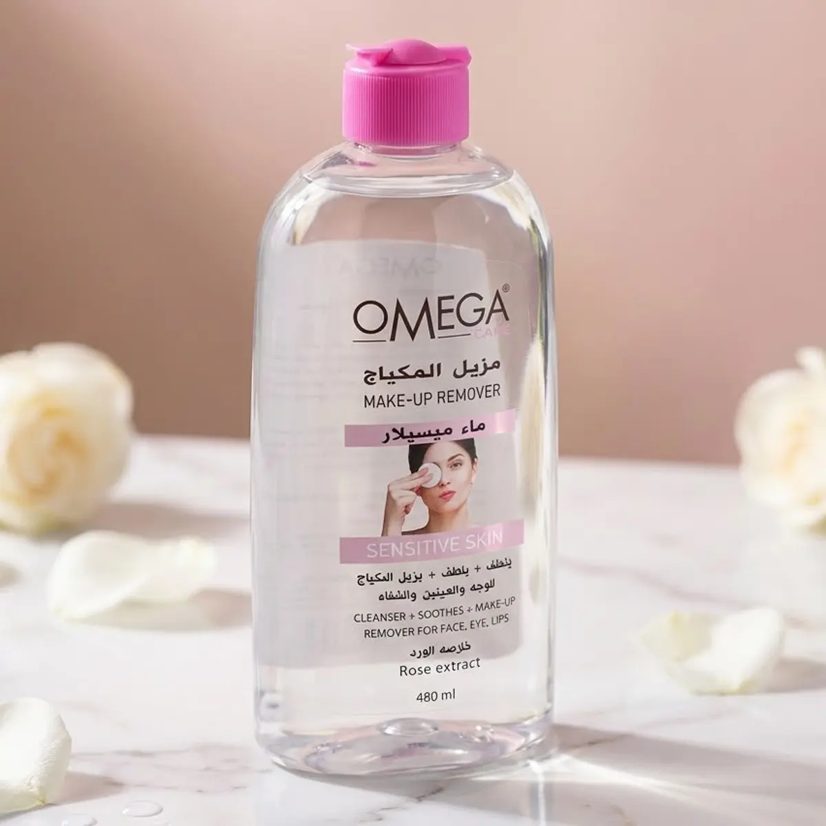 ماء ميسيلار أوميجا كير (Omega Care) بخلاصة الورد لإزالة المكياج وتنظيف البشرة الحساسة - 480 مل
