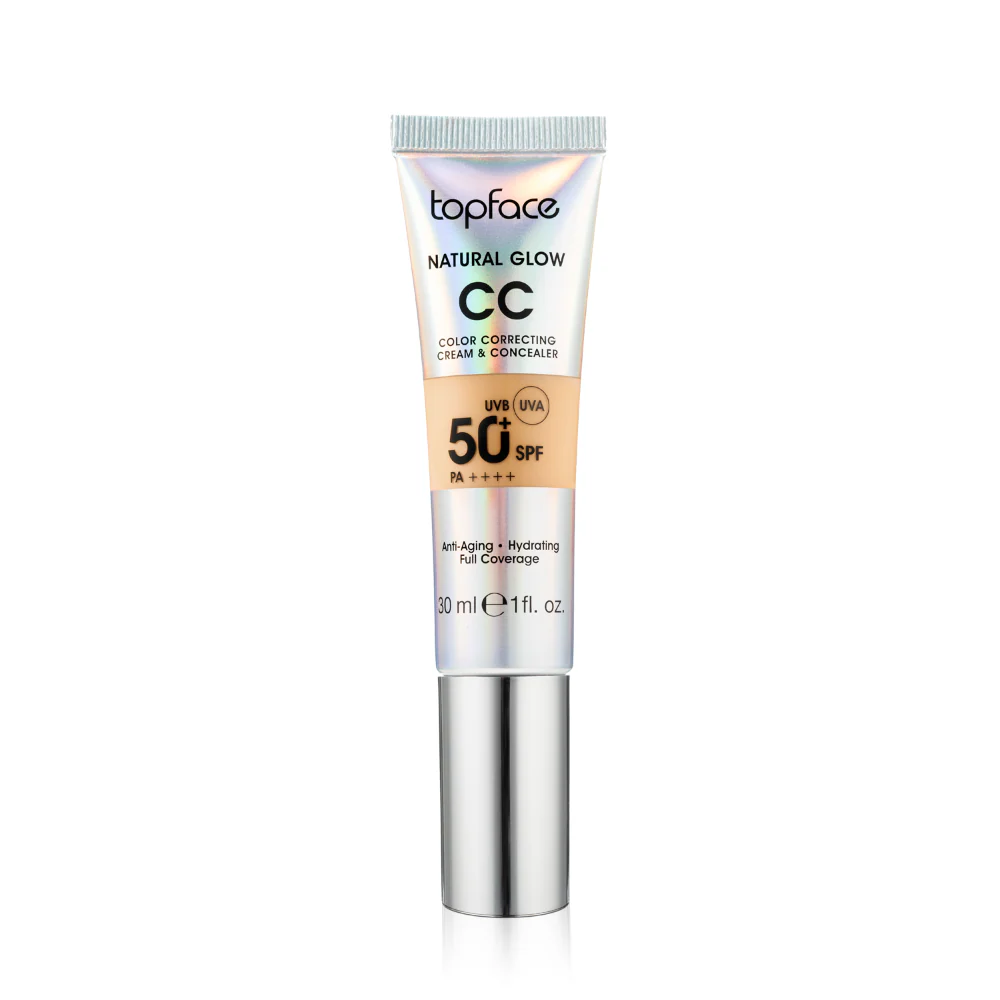اكتشفي الحل الشامل لتوحيد لون البشرة وحمايتها مع كريم Natural Glow CC Cream & Concealer من توب فيس. هذه التركيبة المزدوجة تجمع بين قوة مصحح اللون وخافي العيوب (Concealer)، مع فوائد العناية بالبشرة والحماية القصوى من الشمس.