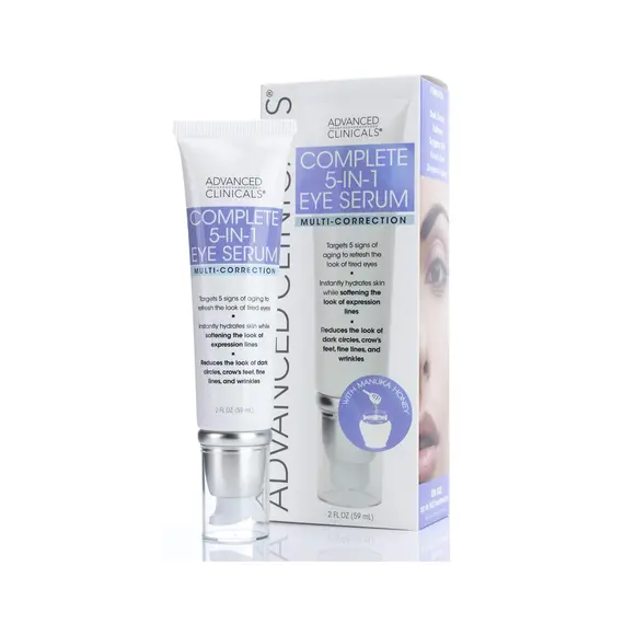 سيروم العين من Advanced Clinicals هو تركيبة متعددة الفوائد تستهدف 5 علامات رئيسية للتقدم في السن حول العينين، بما في ذلك الهالات السوداء، الخطوط التعبيرية، التجاعيد، الجفاف، وأقدام الغراب. يحتوي على عسل المانوكا المعروف بخصائصه المرطبة والمهدئة، مما يمنح مظهرًا أكثر إشراقًا وانتعاشًا للعينين المتعبتين.