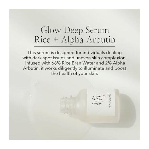 سيروم Glow Deep من Beauty of Joseon هو علاج مركز لتفتيح البشرة وتوحيد لونها، مصمم خصيصًا لمن يعانون من البقع الداكنة والتصبغات. يحتوي على 68% من ماء نخالة الأرز المعروف بخصائصه المغذية والمضيئة، و2% من ألفا أربوتين، وهو مكون فعّال لتقليل فرط التصبغ ومنع ظهور البقع الجديدة.