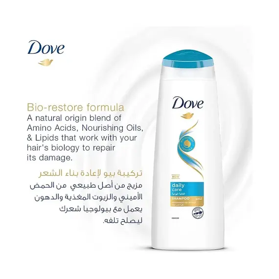 شامبو دوف للعناية اليومية يحتوي على تركيبة بيو لإعادة بناء الشعر، وهي مزيج طبيعي من الأحماض الأمينية والزيوت المغذية والدهون التي تعمل بتناغم مع بيولوجيا الشعر لإصلاح التلف من الجذور حتى الأطراف. ينظف الشعر بلطف ويمنحه ترطيباً متوازناً، مما يجعله أكثر قوة ونعومة ولمعاناً مع كل استخدام.
