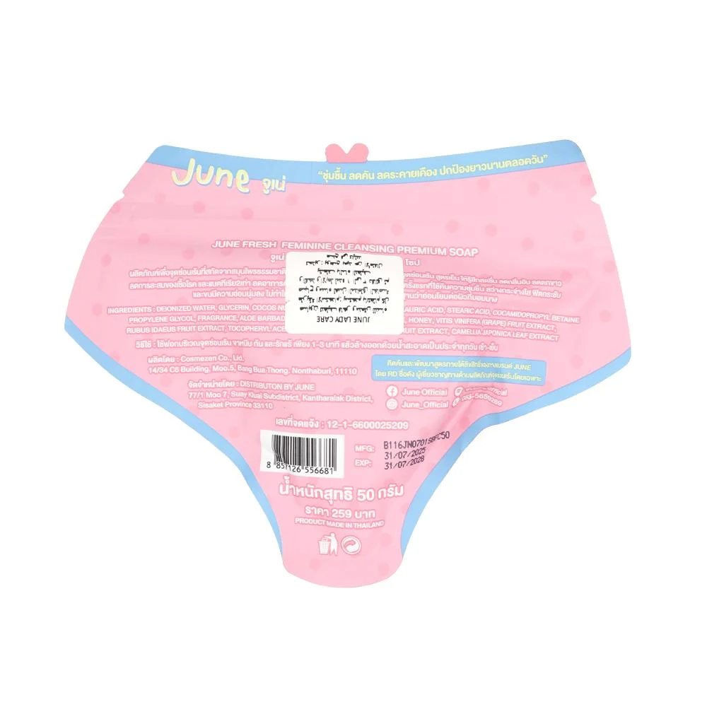 يُقدم صابون June حلاً متكاملاً لـ عناية السيدات (Lady Care)، حيث تم تصميمه خصيصاً لتقديم تنظيف نسائي منعش وفاخر (Fresh feminine Cleansing premium soap). يتميز هذا الصابون بأنه تم تركيبه في كوريا (FORMULATED IN KOREA) بالاستفادة من خبرة الكورية الجنوبية في منتجات العناية بالبشرة الدقيقة.