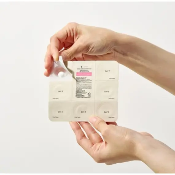 افتح كبسولة واحدة يوميًا (من اليوم 1 إلى اليوم 7)، ووزع محتواها على بشرة نظيفة وجافة، مع تدليك لطيف حتى الامتصاص الكامل. يُفضل استخدامها ليلاً، ويمكن دمجها مع السيروم أو الكريم المعتاد.