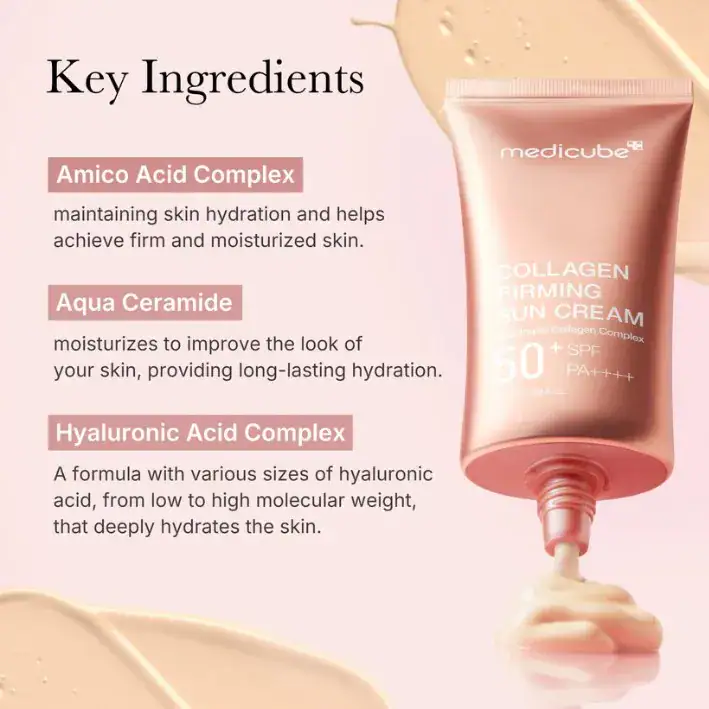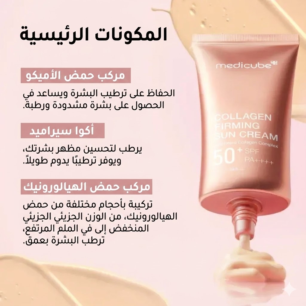 كريم واقي الشمس من Medicube يجمع بين الحماية العالية من الشمس والعناية بمظهر البشرة، بفضل تركيبته الغنية بـ كولاجين قابل للذوبان، حمض الهيالورونيك، سيراميد، وأحماض أمينية. يوفر حماية واسعة ضد أشعة UVA وUVB، ويعمل في الوقت نفسه على ترطيب البشرة وشدها، مما يجعله مثاليًا للبشرة الناضجة أو التي تعاني من فقدان التماسك.