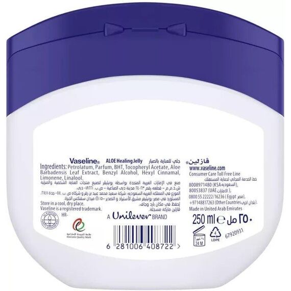 "فازلين جيلي الترطيب بالصبار" يجمع بين الهلام البترولي النقي ١٠٠٪ وخلاصة الصبار الطبيعية، ليمنح البشرة ترطيبًا عميقًا وراحة فورية بعد التعرض لأشعة الشمس. تركيبته المجربة من قبل أطباء الجلد تساعد على تهدئة الاحمرار، تقليل الجفاف، وتعزيز مرونة البشرة دون انسداد المسام.