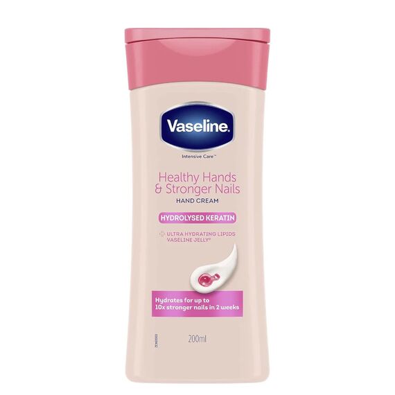 كريم اليدين من فازلين "Healthy Hands & Stronger Nails" يحتوي على الكيراتين المتحلل والليبيدات المرطبة الفائقة مع جيللي فازلين، ليمنح اليدين ترطيبًا عميقًا ويساعد على تقوية الأظافر حتى ١٠ مرات أكثر خلال أسبوعين. تركيبته خفيفة وسريعة الامتصاص، مثالية للاستخدام اليومي دون ترك ملمس دهني.