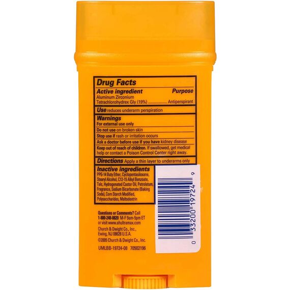 مزيل العرق Ultra Max من Arm & Hammer بنسخة "Fresh" هو تركيبة قوية مضادة للتعرق توفر حماية تدوم حتى 48 ساعة ضد التعرق والرائحة. يحتوي على مكونات فعالة لتقليل إفراز العرق، ويتميز برائحة منعشة تناسب الاستخدام اليومي والنشاطات المكثفة. تركيبة صلبة وسهلة التطبيق، مصممة لتمنحك شعورًا بالنظافة والثقة طوال اليوم.