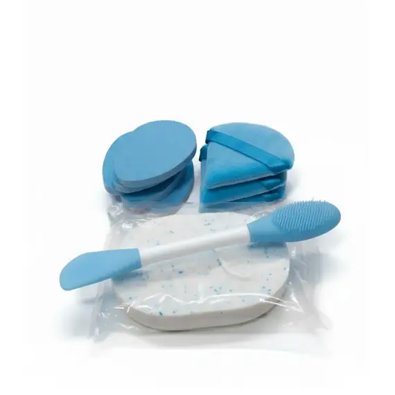 عدة إسفنجات تجميل بألوان زرقاء – داخل عبوة عرض شفافة