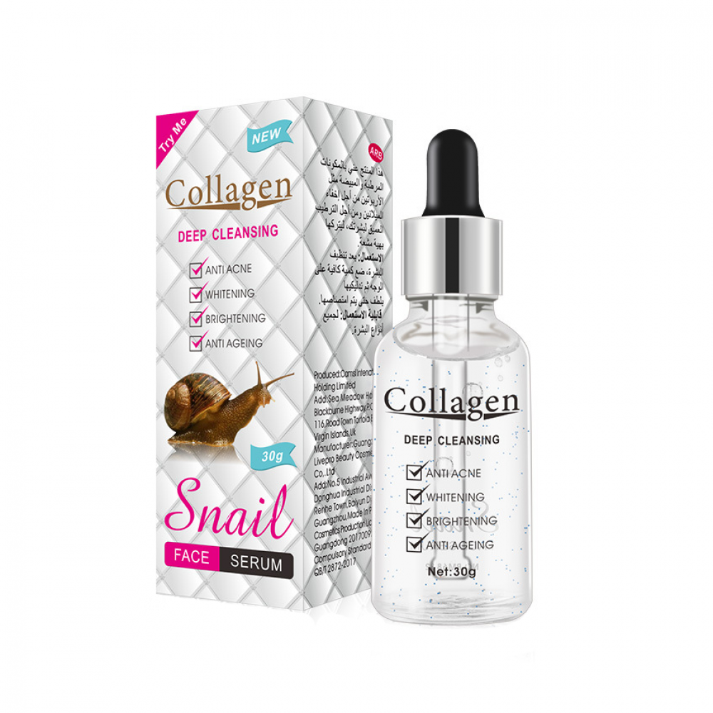 سيروم "كولاجين بخلاصة الحلزون" يُستخدم لتنظيف البشرة بعمق، ويُروّج له بأنه يُساعد على مكافحة حب الشباب، تفتيح البشرة، توحيد اللون، ومكافحة علامات التقدم في السن. يحتوي على مكونات نشطة مثل الكولاجين وخلاصة الحلزون، ويُناسب الاستخدام الموضعي اليومي.