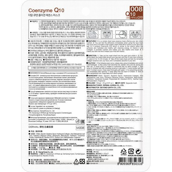 إعادة هيكلة شباب البشرة: DERMAL Q10 Collagen Essence Mask لشد وتجديد متقدم