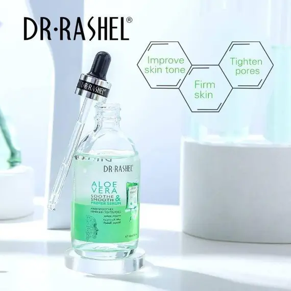 سيروم "د. راشيل" يحتوي على مستخلص الصبار الطبيعي، ويُروّج له بأنه يُهدئ البشرة، يُنعّم الملمس، ويُقلل من مظهر المسام. يُستخدم كبرايمر قبل المكياج أو كخطوة ترطيب يومية.