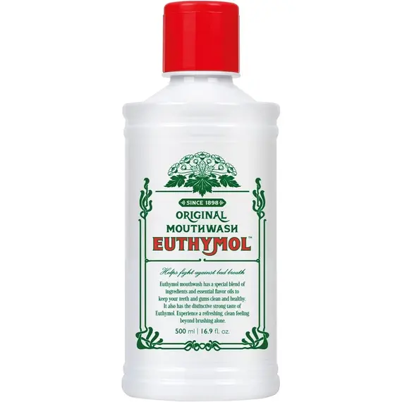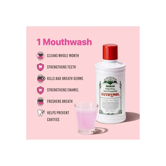 يمنح إحساسًا منعشًا وقويًا يدوم لساعات، ويُكمل فعالية تنظيف الأسنان بالفرشاة، مع نكهة مميزة وقوية تشتهر بها منتجات Euthymol منذ عام 1898.