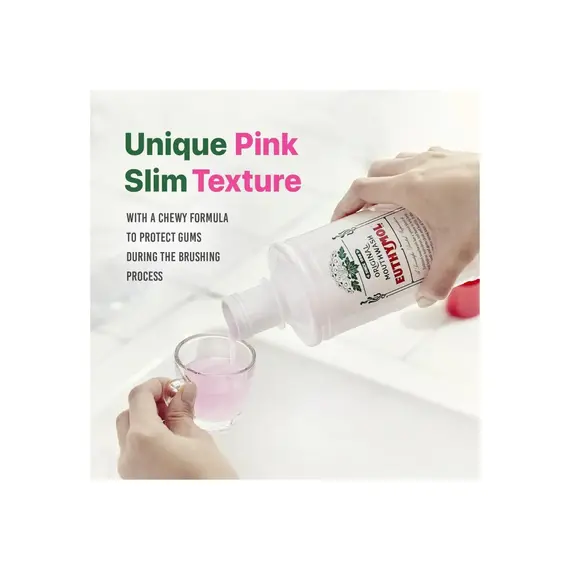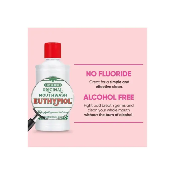 مزيج من الزيوت العطرية الطبيعية، مكونات مطهرة، تركيبة خالية من الفلورايد والبارابين، نكهة Euthymol المميزة