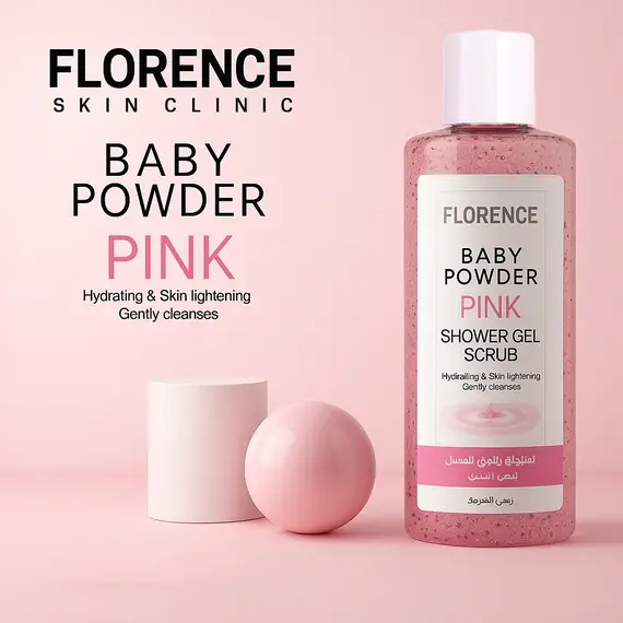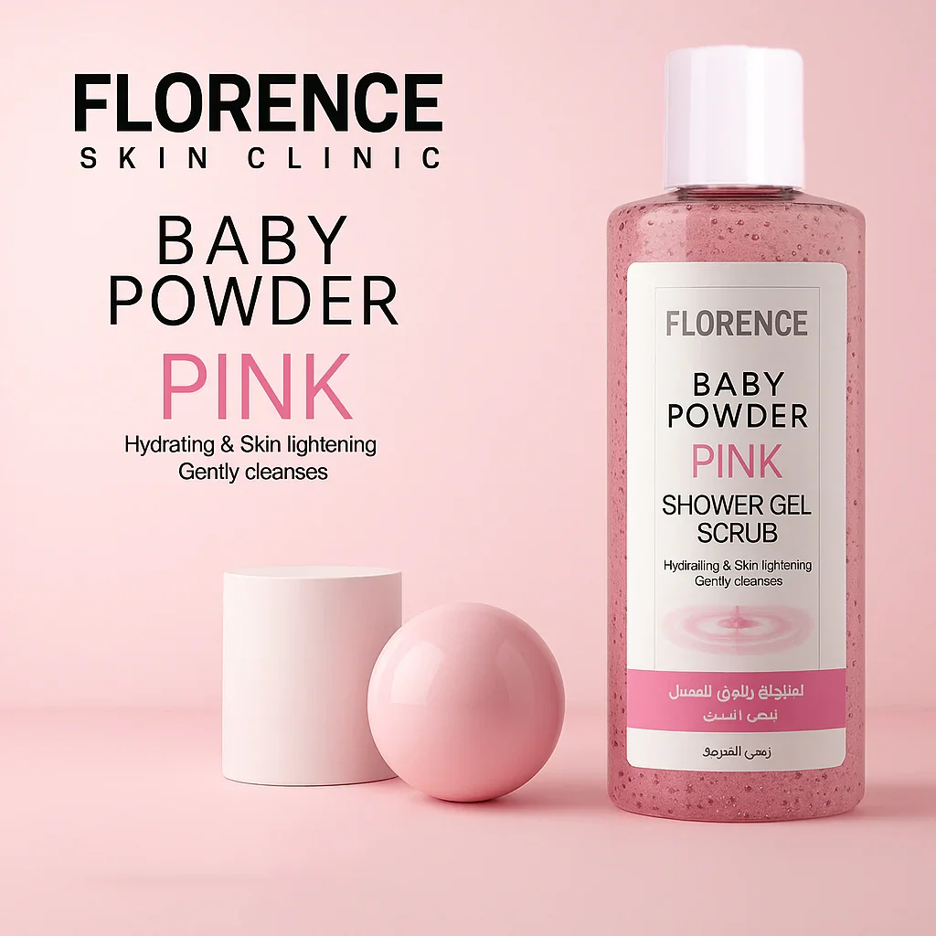 جل استحمام مقشر برائحة بودرة الأطفال الوردية – فلورنس – 300 مل