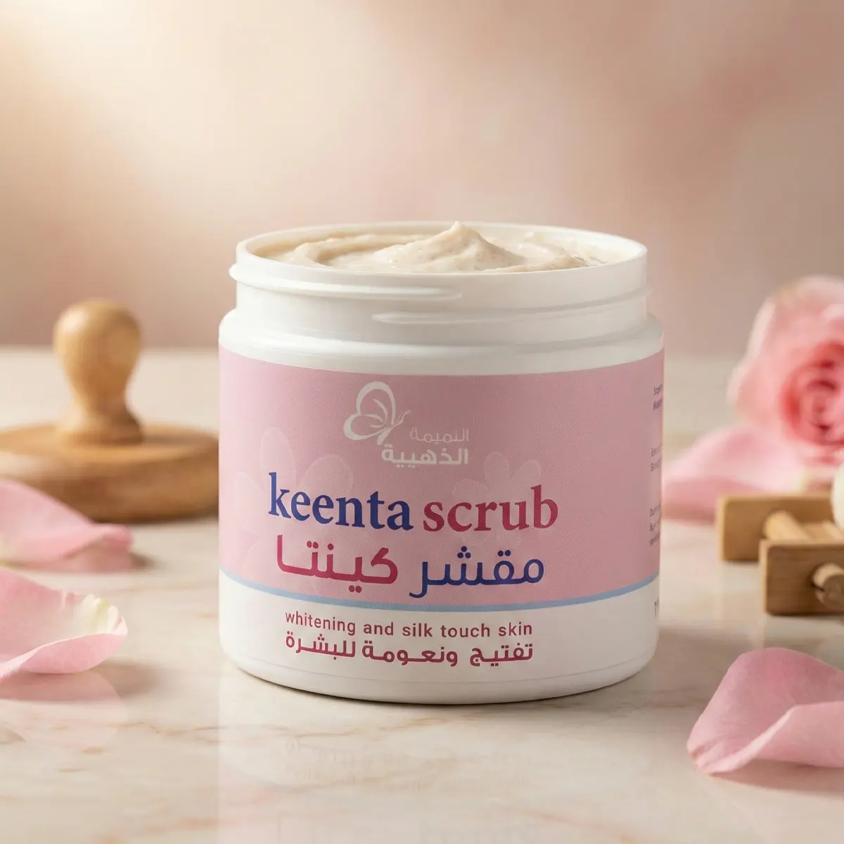جددي حيوية بشرتك واحصلي على ملمس حريري مع مقشر كينتا (Keenta Scrub) من مجموعة "التميمة الذهبية". صُمم هذا المقشر بتركيبة متطورة تعمل على تقشير خلايا الجلد الميتة بلطف وتفتيح لون البشرة، لتستمتعي بجسم فائق النعومة والجمال.