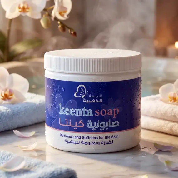 امنحي جسمك دلالاً استثنائياً مع صابونية كينتا (Keenta Soap) من مجموعة "اللمسة الذهبية". صُممت هذه الصابونية بتركيبة غنية ومكثفة لتكون رفيقك المثالي في الحمام المغربي والروتين اليومي للعناية بالجسم، مما يمنحك بشرة تشع نضارة وحيوية.