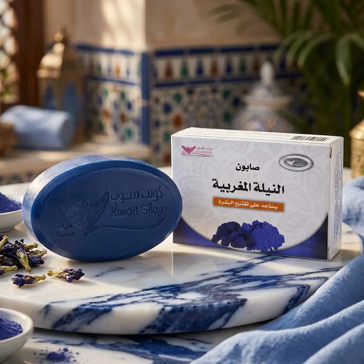 اكتشفي سر الجمال المغربي التقليدي مع صابون النيلة المغربية من كويت شوب. تُعد النيلة المغربية من أشهر المكونات الطبيعية المستخدمة منذ القدم لتنقية الجلد ومنحه بياضاً ناصعاً ونعومة فائقة.