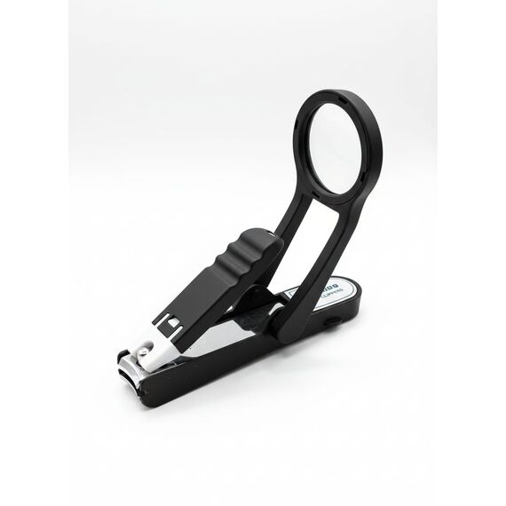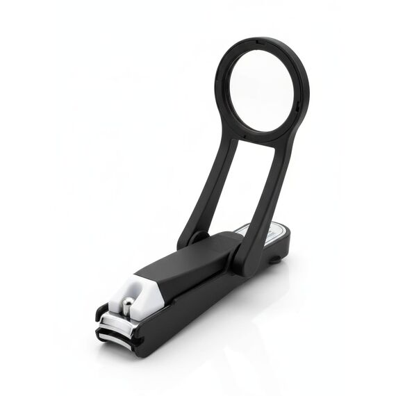 قصّافة أظافر معدنية مزودة بعدسة مكبرة دائرية، مصممة لتوفير رؤية أوضح أثناء القصّ، خصوصًا لكبار السن أو أصحاب النظر الضعيف. الذراع البلاستيكي الأسود يوفر ضغطًا مريحًا، بينما العدسة تساعد على تحديد الحواف بدقة.